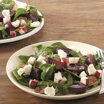 - While the classic Roasted Beet Salad with Goat Cheese recipe is a go-to for many people, it’s become a bit mainstream. Add the excitement back with just a few tweaks, thanks to this amazing Roasted Beet Spinach and Apple Salad recipe.