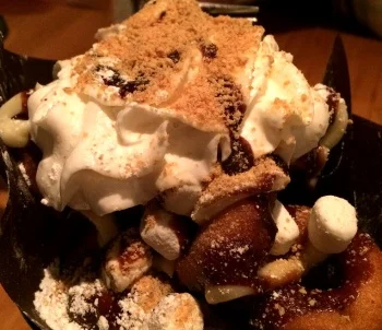 S’mores (pictured above) - vanilla glaze and chocolate sauce, topped with whipped cream, crumbled graham cracker and marshmallows.