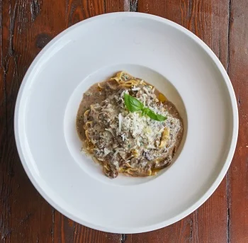 Tagliatelle al Funghi Pasta ($18) Housemade flat ribbons of pasta are served with assorted sautéed mushrooms, mushroom cream, grated Parmigiano-Reggiano, extra virgin olive oil, fresh parsley and truffle oil.