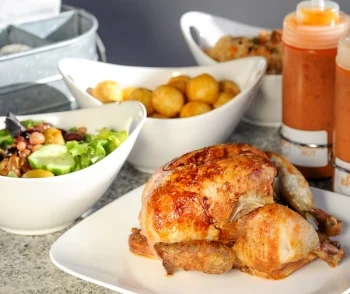 Mains of churrasqueira (rotisserie) chicken (whole $13, half $7 breast $5.25, leg $4.75), grilled chicken ($14, by order only, one hour in advance), and pan-fried basa fillet are available every day. There are also daily specials – Tuesdays: whole chicken and two sides for $18; Fridays: Cod fish, for instance.