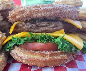 - Churro Cheeseburger (pictured above). Pancho's/Epic Burger. Food Building