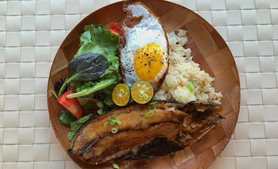 Silog Combo Plate for One ($12) The ultimate meal no matter what time of day. Garlic rice, duck egg and mixed green salad, with your choice of bangus (milkfish), BBQ skewers, fried chicken or tofu. Get the milkfish done with vinegar.
