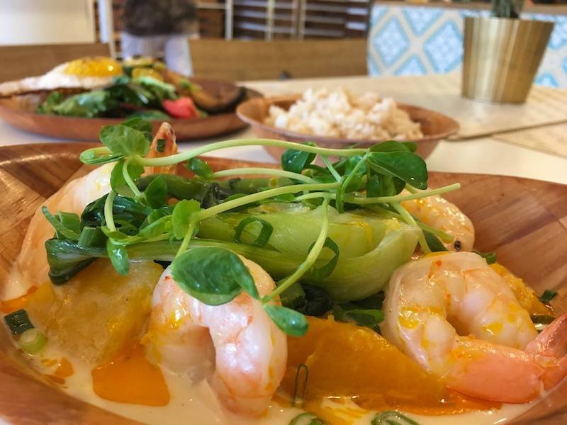 Ginataan ($10, with 6 pcs. shrimp $14) Simultaneously clean and comforting, the large bowl features plump shrimp, tender squash, and snappy green beans in a soothing coconut and miso broth.