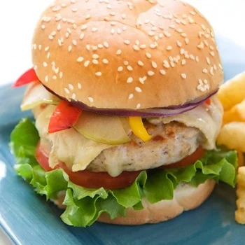 Apple-Brie Pork Burgers get a creamy richness from Irresistibles Brie and a nice bright crunch from apples and onions. A fun twist? Stuff the brie inside the patty for added oomph and surprise.