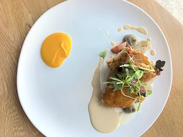 Uhsun Mandoo ($28) An outstanding Korean-style ravioli – thin packets filled with seafood – daily fish (seared sea bass) bay scallop, prawns and calamari – that are easily discernable despite being mixed together and stuffed into pasta. Prawns and small slices of fish are also set outside atop the ravioli, adding to the seafaring feel and taste. An onion puree, spring pea puree and soy chili beurre blanc completes the elegant, elevated dish.