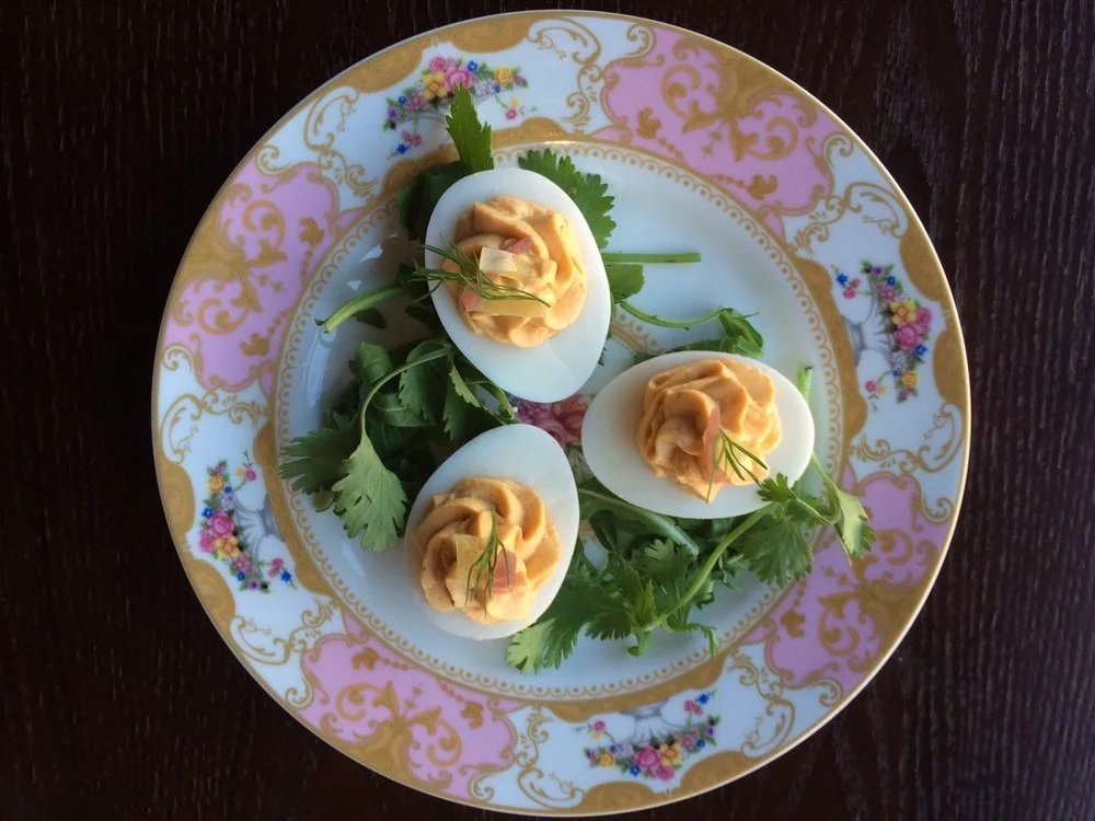 Traditional stuffed eggs ($6/4) - paprika, mayonnaise, sour cream, mustard, and hot sauce – are available during both lunch and dinner service.