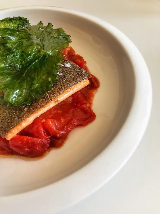 Rainbow Trout, piperade, crispy mustard greens. A dish Mann whipped up during the pandemic.